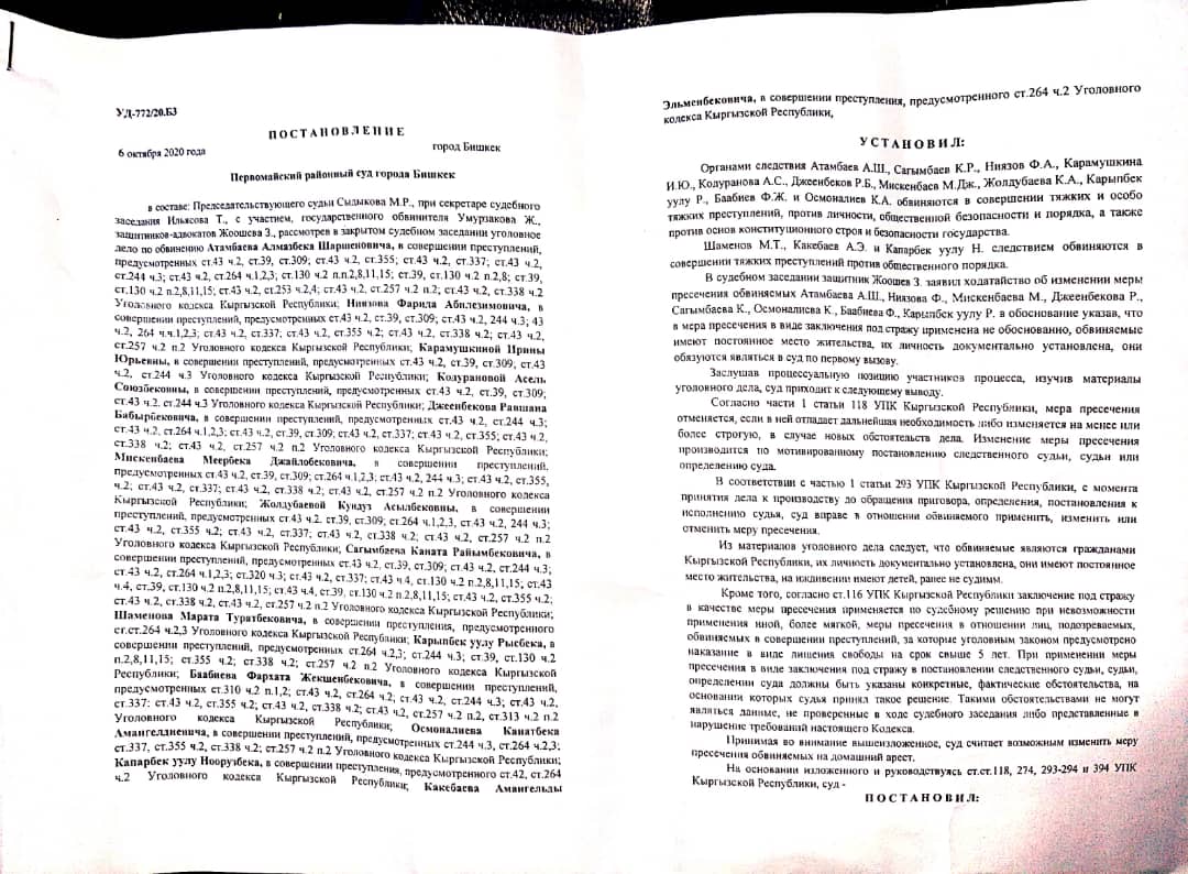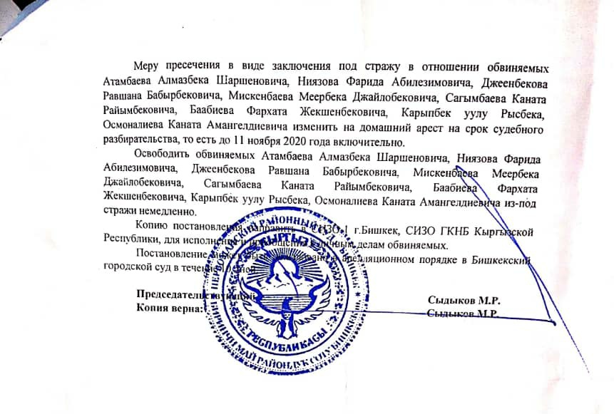 Анын айтымында, соттун үй камагына чыгарылсын деген токтомуна карабастан, Атамбаев УКМКнын тергөө абагында отурат.