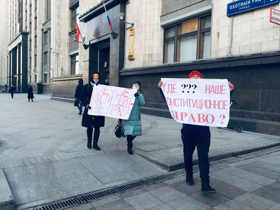 Москвадагы Мамлекеттик думанын алдына кыргызстандык мигранттар митингге чыгышты. Бул тууралуу 24-kg.com агенттигине окурмандар билдирди.