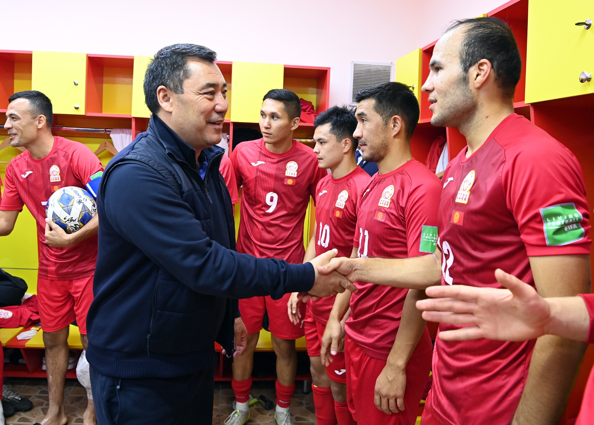 Оюн бүткөн соң, мамлекет башчысы спортчуларды ишенимдүү жеңиши менен куттуктоо үчүн Кыргызстандын курамасы эс алган бөлмөгө кирди. Ал бул беттеште команда татыктуу жана кызыктуу оюн көрсөткөнүн белгиледи.