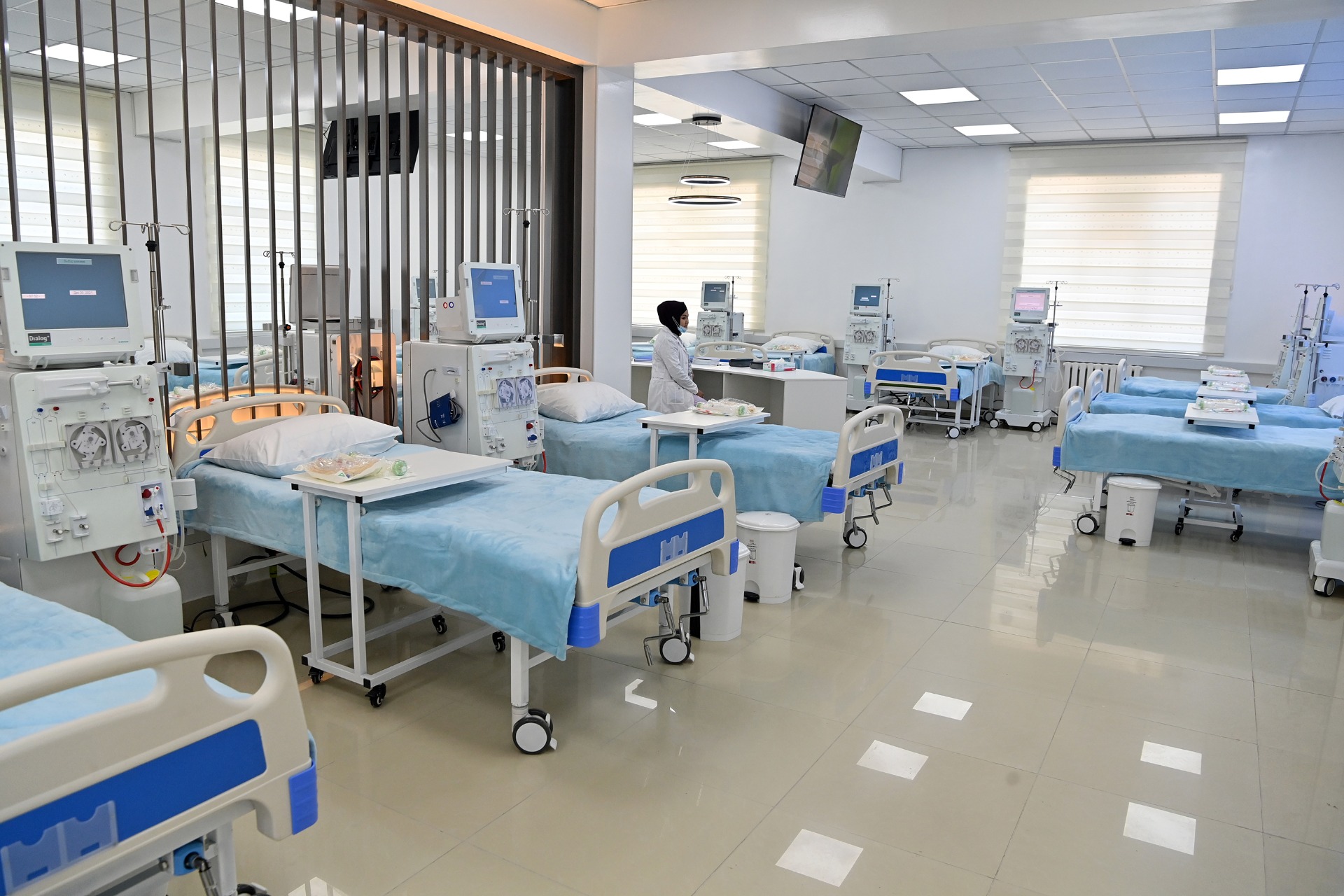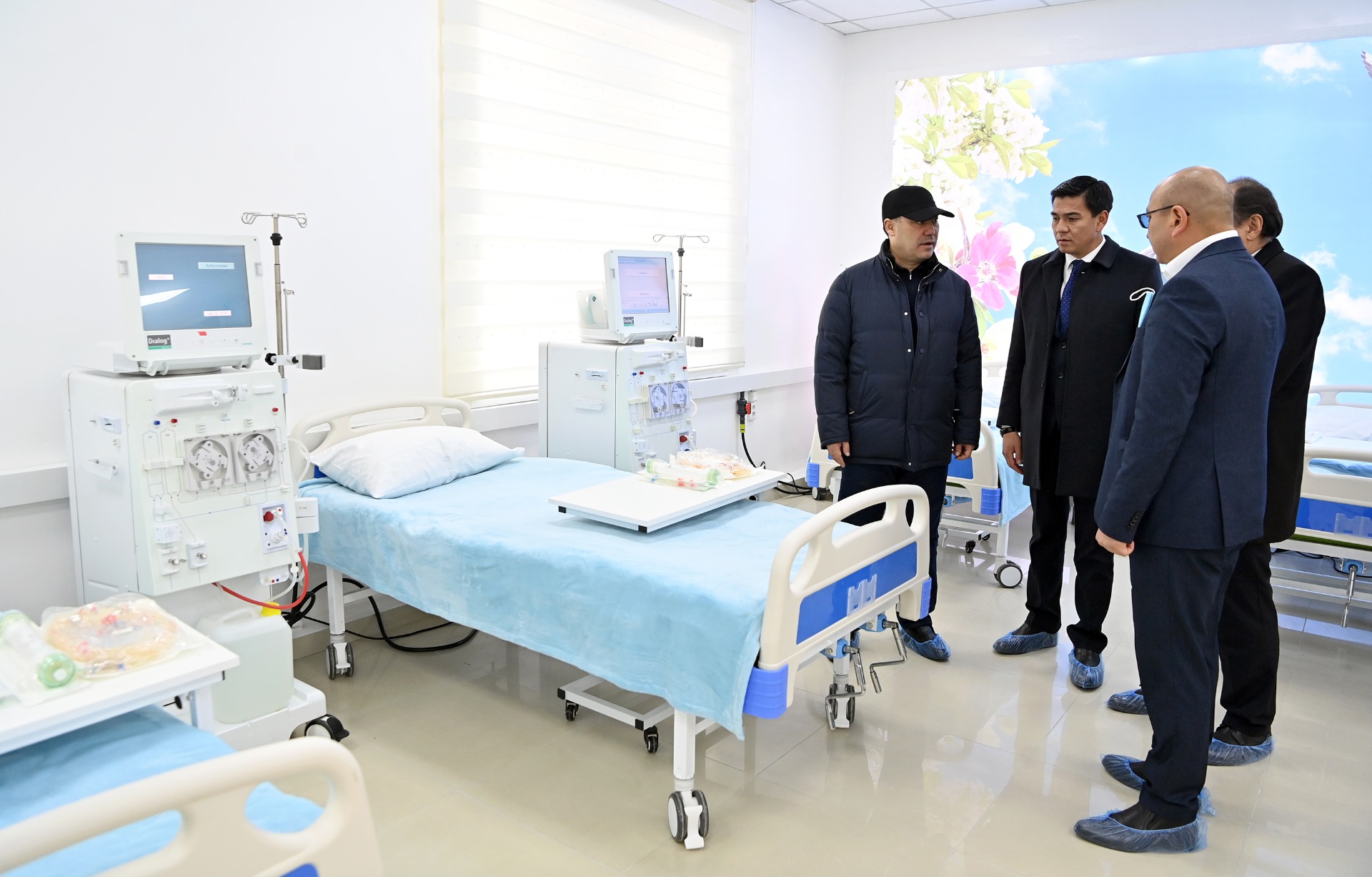 Мамлекет башчысы гемодиализ борборунун ишмердүүлүгү, ал жерде түзүлгөн шарттар менен таанышып, медициналык жайларды жана палаталарды карап чыкты.