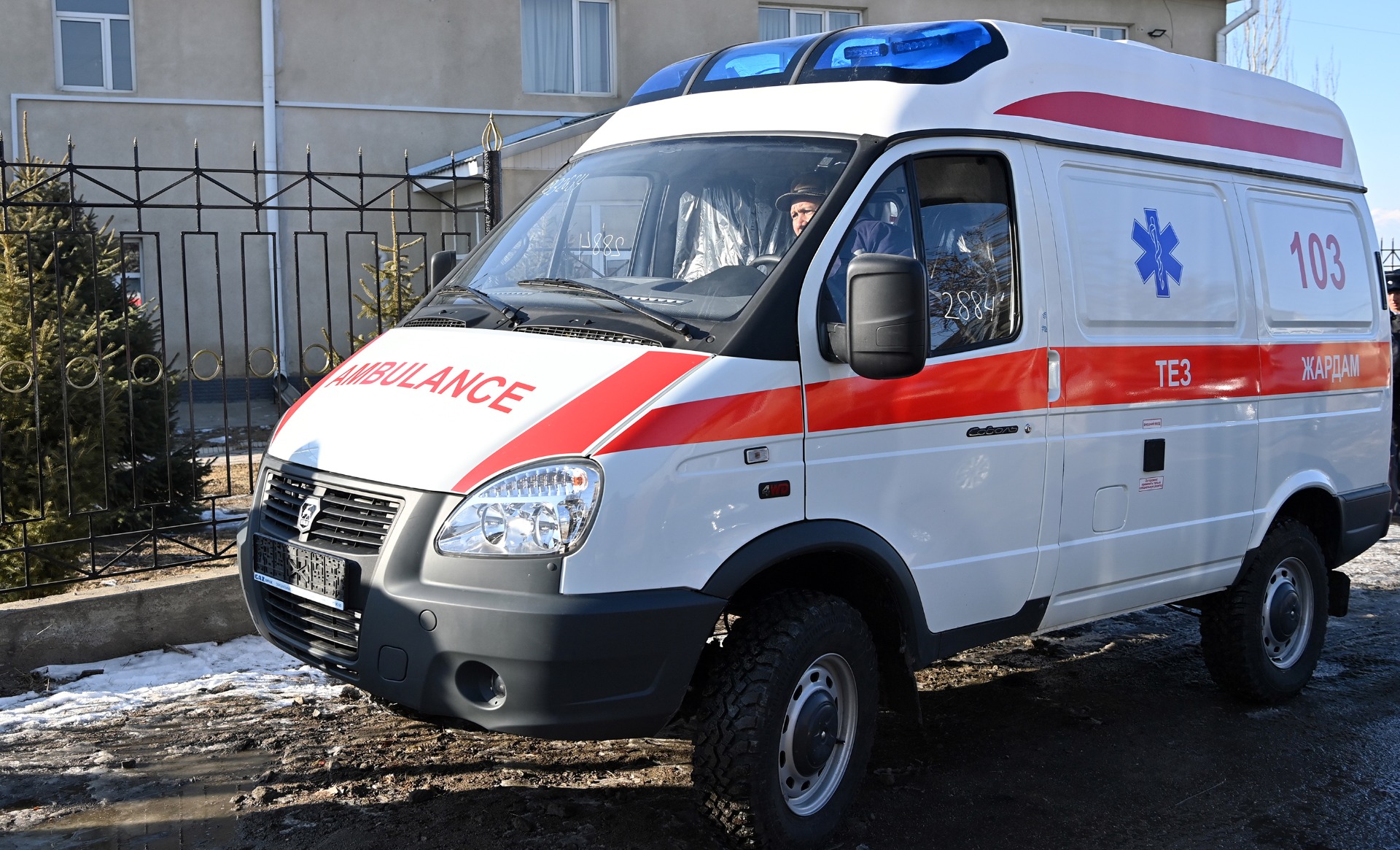 Жалпысынан мамлекет башчысы саламаттыкты сактоо тармагына аймактык ооруканалар үчүн сегиз тез жардам унаасын белекке берди.