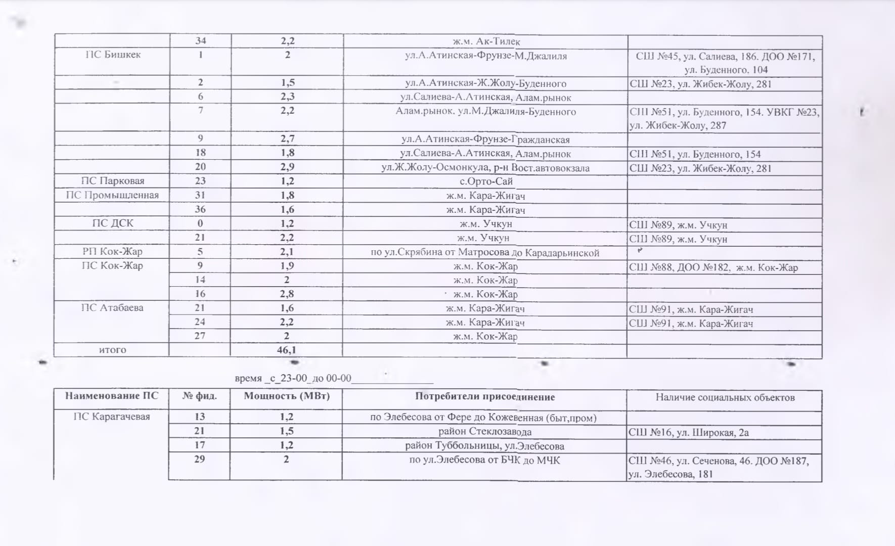 Бишкекте электр жарыгын өчүрүү графиги жарыяланды.