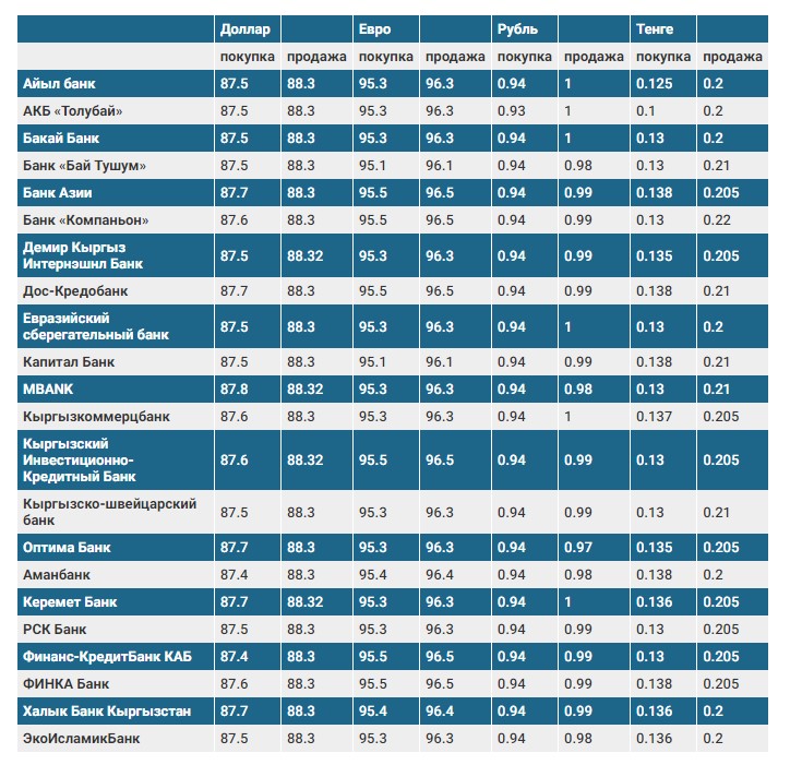 Валюталардын коммерциялык банктардагы бүгүнкү наркы
