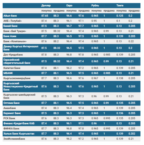 Валюталардын коммерциялык банктардагы бүгүнкү наркы