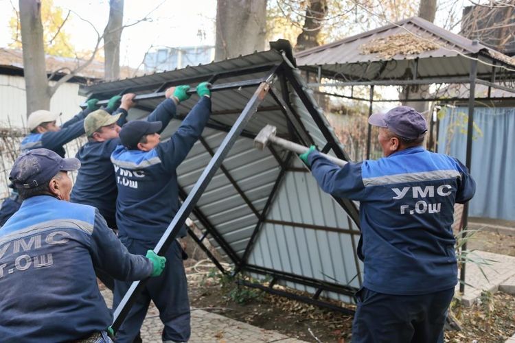 Ош шаарында мыйзамсыз курулган жана келишим эрежелерин сактабаган коомдук тамактануучу жана соода жайлары бузулууда. Бул тууралуу мэриянын басма сөз кызматы билдирди.