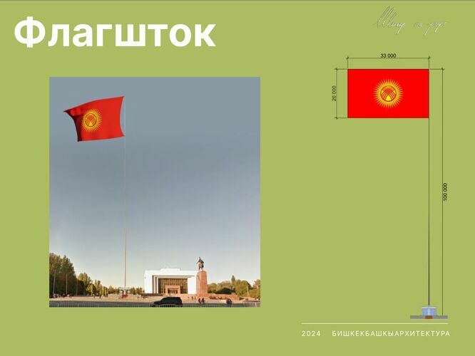 Маалымдалгандай, аянтты маданий жана туристтик жайга айлантуу пландалууда. Ошондой эле долбоор боюнча, 100 метрлик флагшток орнотулат, азыр анын бийиктиги 45 метрди түзөт.