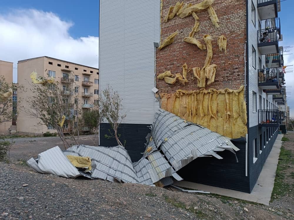 Балыкчыда катуу шамал көп кабаттуу үйдүн сыртын учуруп кетти
