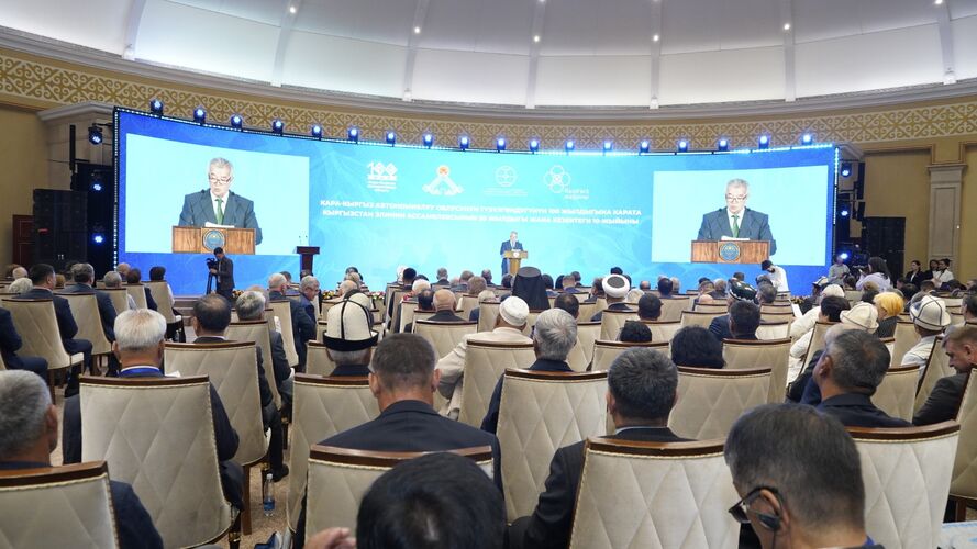 Кара-Кыргыз автономиялуу облусунун түзүлгөндүгүнүн 100 жылдыгына арналган иш-чара «Ала-Арча» мамлекеттик резиденциясында өттү. Мамлекет башчысынын кайрылуусун катышуучуларга мамлекеттик катчы Сүйүнбек Касмамбетов окуду.