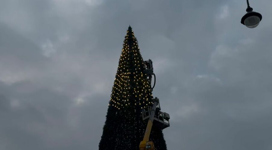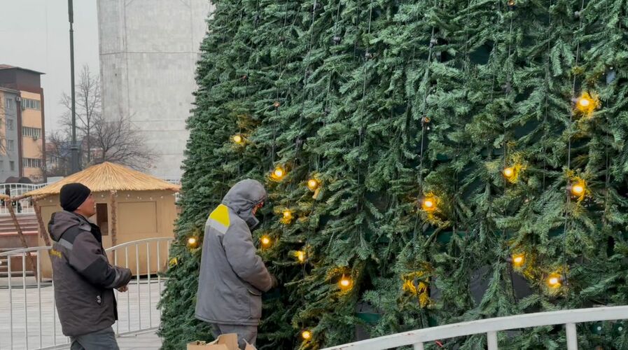 «Бишкексвет» муниципалдык ишканасынын адистери гирляндаларды орнотууда жана жакында майрамдык оюнчуктарды илип башташат.