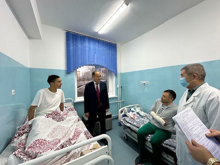 Саламаттыкты сактоо министри Алымкадыр Бейшеналиев Казакстандагы авиакырсыктан жабыркаган Кыргыз Республикасынын жарандарынын ден соолугунун абалы менен таанышты.