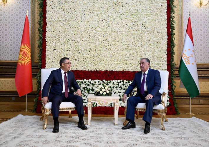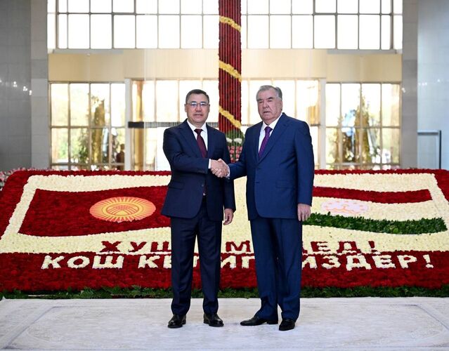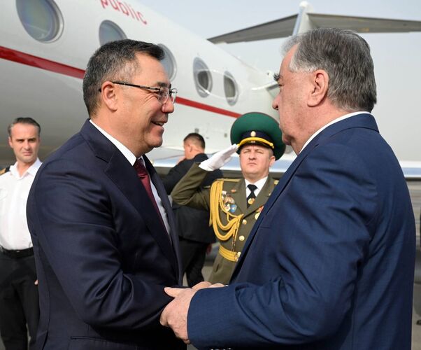 Президент Садыра Жапаровду Тажикстандын президенти Эмомали Рахмон тосуп алды.