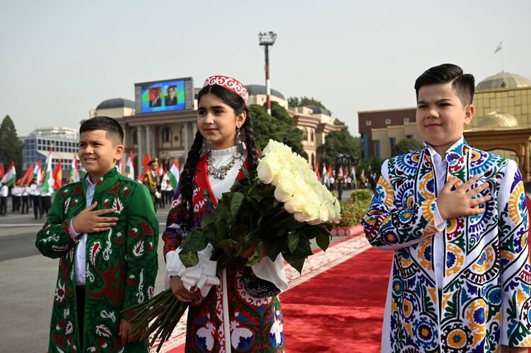 Душанбе шаарынын эл аралык аэропортунда эки өлкөнүн мамлекеттик туулары илинип, килем төшөлүп, ардак кароол тизилди.