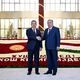 Өз ара саламдашуудан кийин, өлкө лидерлерин улуттук кийим кийген улан-кыздар тосуп алышты. Андан соң мамлекет башчыларына 500дөн ашуун артист катышкан чакан концерттик программа көрсөтүлдү.