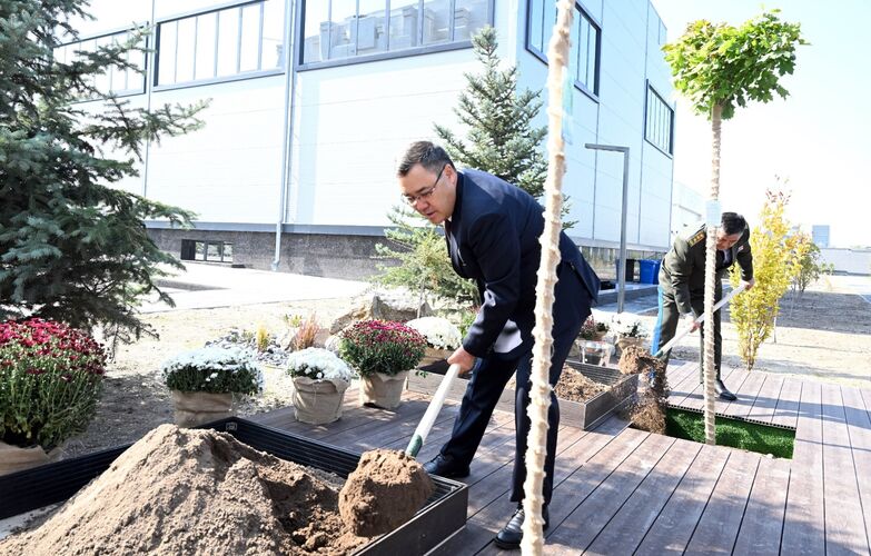 Андан соң мамлекет башчысы символикалык түрдө УКМКнын жаңы имаратынын боосун чечти.