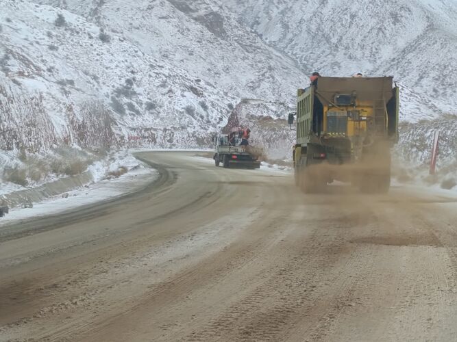 «Кыргызавтожол-Түштүк» жана «Кыргызавтожол-Түндүк» мамлекеттик ишканалары тарабынан күнү-түнү кум-туз аралашмасын себүү жумуштары аткарылып жатат. Каттам бар.