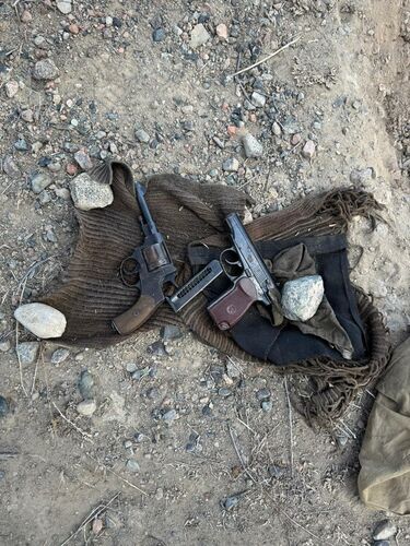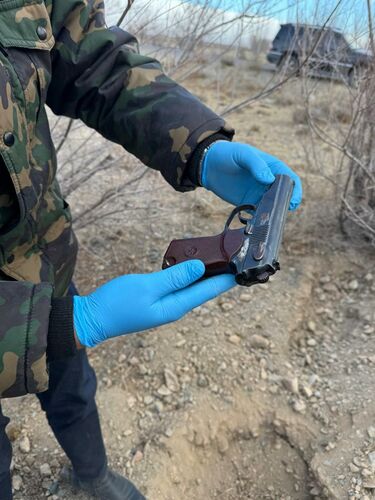 УКМК кызматкерлери тарабынан жүргүзүлгөн ыкчам-тергөө иш-чараларынын натыйжасында Балыкчы шаарынын четинде «Макаров» тапанчасы жана «револьвер» түрүндөгү 1 даанадан ок атуучу курал табылган.
