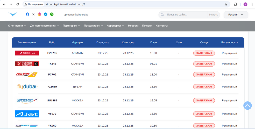 Калың тумандан улам «Манас» аэропортунда каттамдар кармалууда. Бул тууралуу аэропорттун учуу маалымат тактасында айтылат.