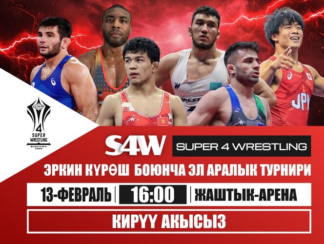Бүгүн, 13-февралда Бишкек шаарындагы «Жаштык» аренасында эркин күрөш боюнча Super 4 Wrestling (S4W) эл аралык турнири өтөт. Бул — жаңы муундагы мелдеш, анда дүйнөнүн эң күчтүү балбандары бир килемде беттешет.