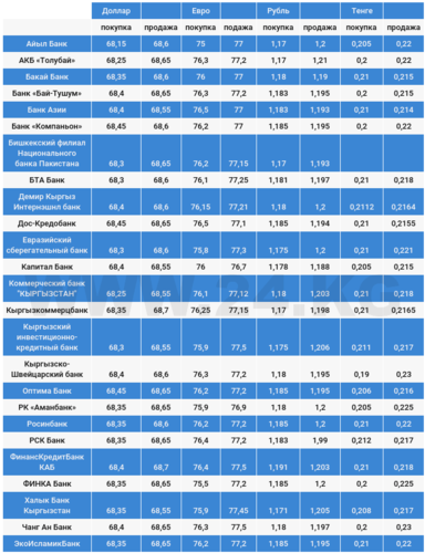 Доллардын коммерциялык банктардагы бүгүнкү наркы.