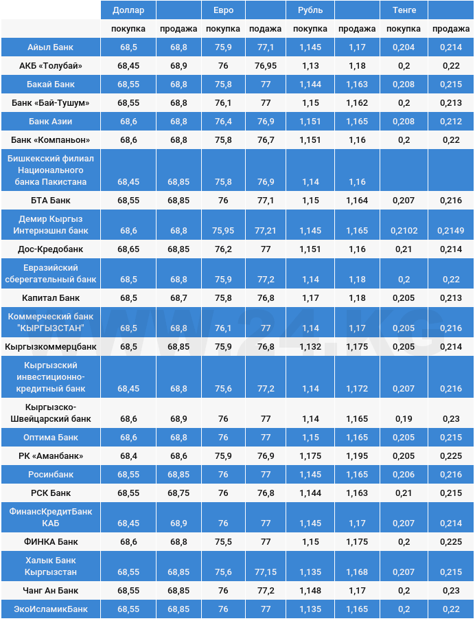 Доллардын коммерциялык банктардагы бүгүнкү наркы.