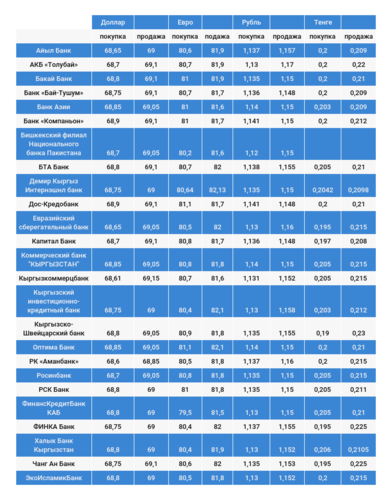 Курс валют в коммерческих банках Кыргызстана на 18 апреля