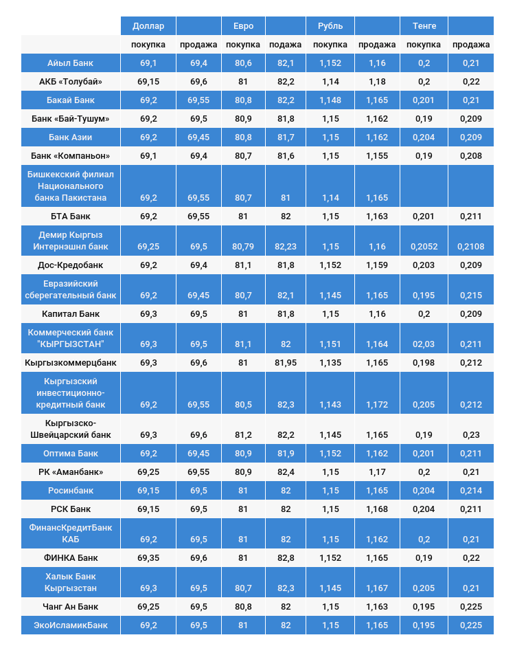 Доллардын коммерциялык банктардагы наркы