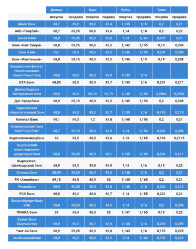 Доллардын коммерциялык банктардагы наркы.