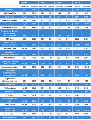 Валюталардын коммерциялык банктардагы бүгүнкү наркы.