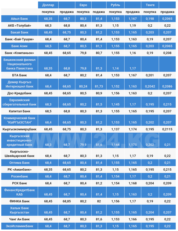 Чет элдик валюталардын коммерциялык банктардагы бүгүнкү наркы.