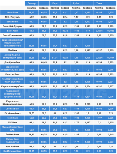 Валюталардын коммерциялык банктардагы наркы