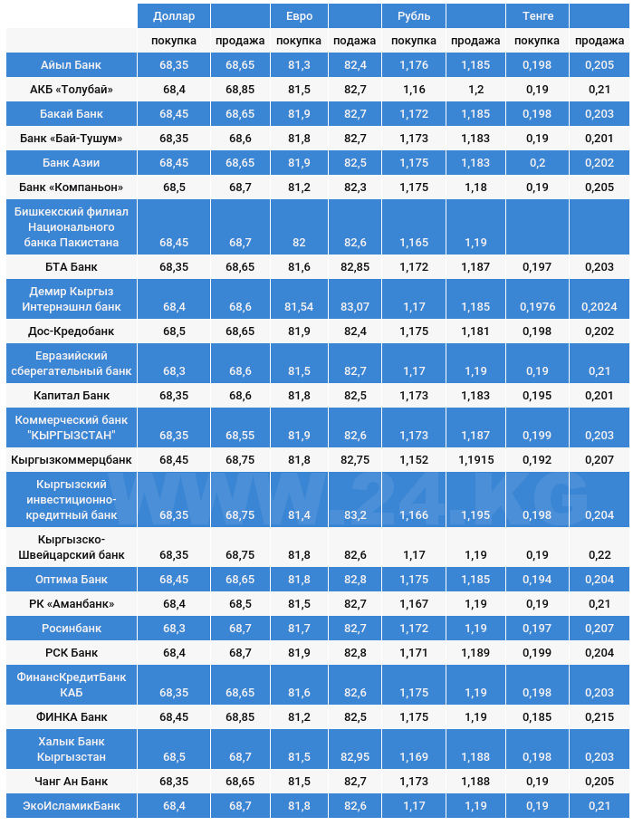 Чет элдик валюталардын сомго карата коммерциялык банктардагы наркы.