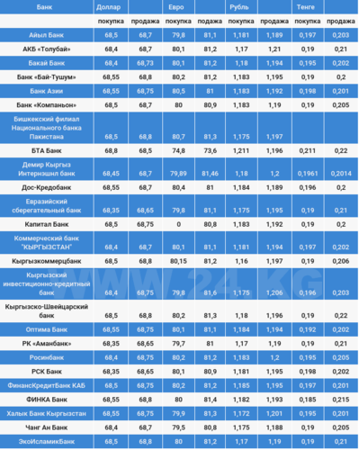 Валюталардын коммерциялык банктардагы наркы