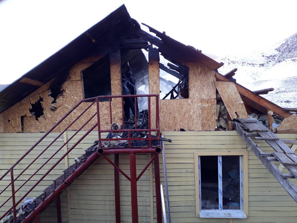 Алардын айтымында, эки кабаттуу имараттын 80 чарчы метр темир менен жабылган чатыры жана жыгач устундуу мансарды күйүп кетти.