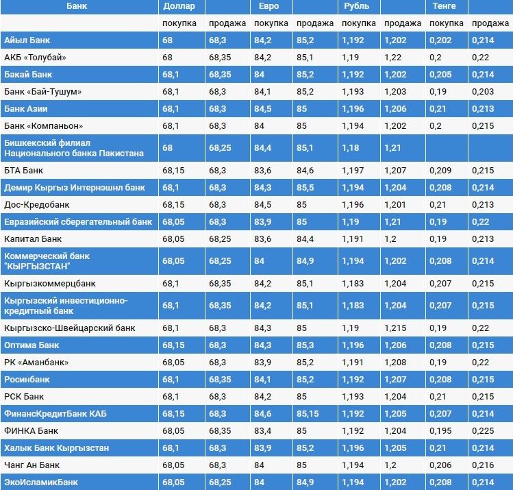 Валюталардын коммерциялык банктардагы наркы.