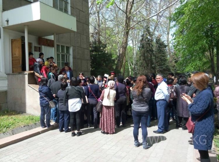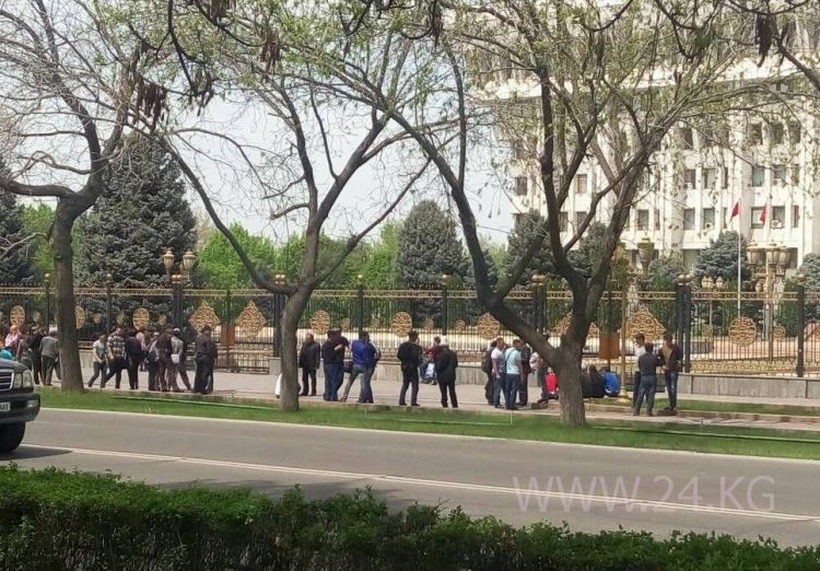 Ош базарында катталган өрттөн жабыр тарткан соодагерлер кайрадан Акүйдүн алдына митингге чыгышты.