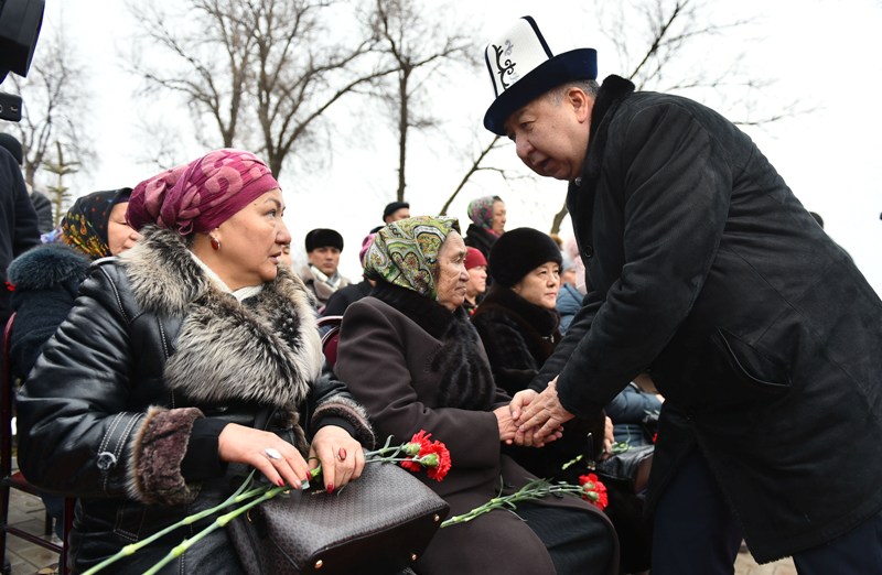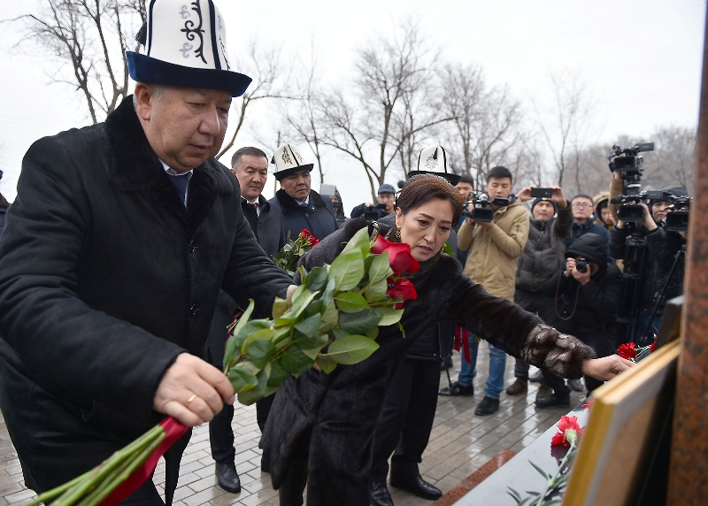 В мероприятии участвовали руководитель аппарата президента Кыргызстана Досалы Эсеналиев, близкие погибших и представители общественности.