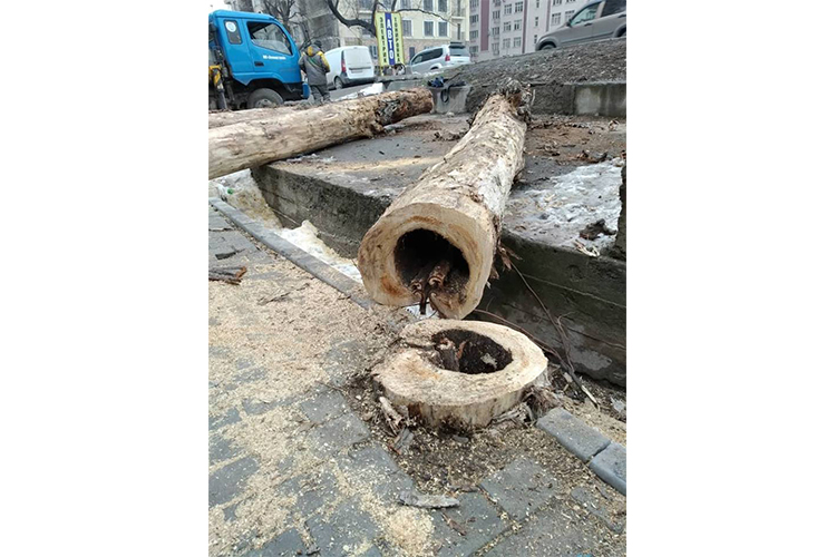 Поэтому Бишкекзеленхоз круглый год производит санитарную обрезку и снос аварийных деревьев, чтобы вместо них со временем посадить молодые деревца.