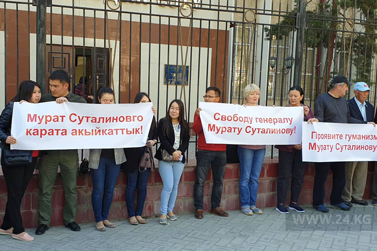 В Бишкеке возле здания городского суда собрались сторонники экс-главы СНБ (ныне ГКНБ) Мурата Суталинова.