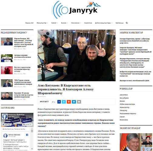Кроме того, если ввести адрес, который отображен на скриншоте на сайте «Жанырык» https://kavkaz.versia.ru/aziz-batukaev/v-kyrgyzstane-est-spravedlivost-ya-blogadaren-almazu, в строку поиска, результат показывает, что такой публикации на сайте нет.