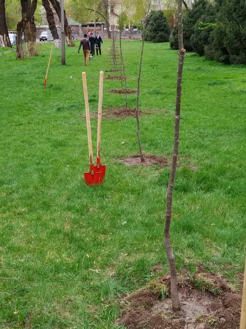 Агрономы МП «Бишкекзеленстрой» показали, как правильно высаживать деревья.
