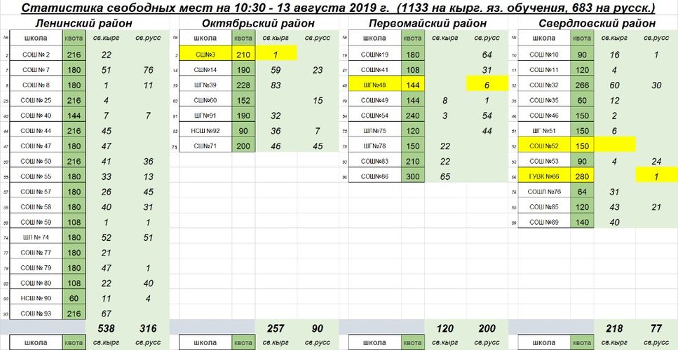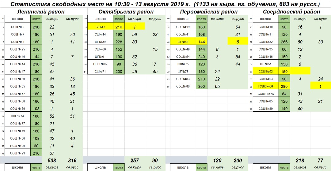 В первые классы школ Бишкека свободными остается 1 тысяча 830 мест. Об этом 24-kg.com сообщил разработчик «Электронной записи в школу» Тологон Аматов.