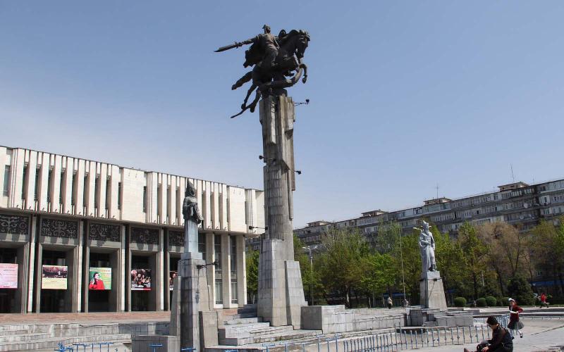 Больше всего крупных памятников в Кыргызстане установили герою одноименного эпоса Манасу. Эпос — самый большой в истории мирового фольклора. Он сочетает историческую действительность и мифы. Манас — легендарный батыр, который объединил кыргызские племена и вернул им родину.