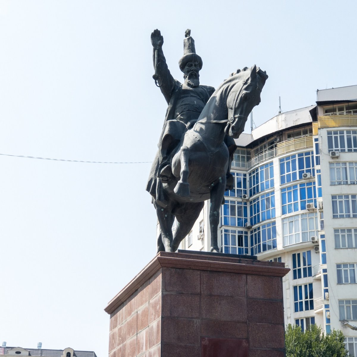 Одна из самых больших и выдающихся статуй Манаса находится на площади Ала-Тоо и называется «Айкол Манас».