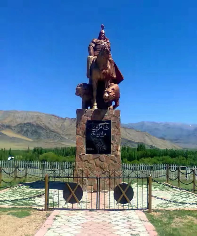 Есть памятник Манасу и на въезде в Таласскую область. Именно здесь, согласно преданию, похоронен герой.