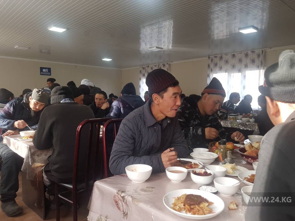«Четыре раза в день кушают, на их ежедневное питание выделяется по 250 сомов. Ежедневное меню состоит из фруктов, сладостей, сливочного масла, первого и второго блюд. Из напитков на выбор — максым, айран, чай», — хвалится Таалайбек Аширов.
