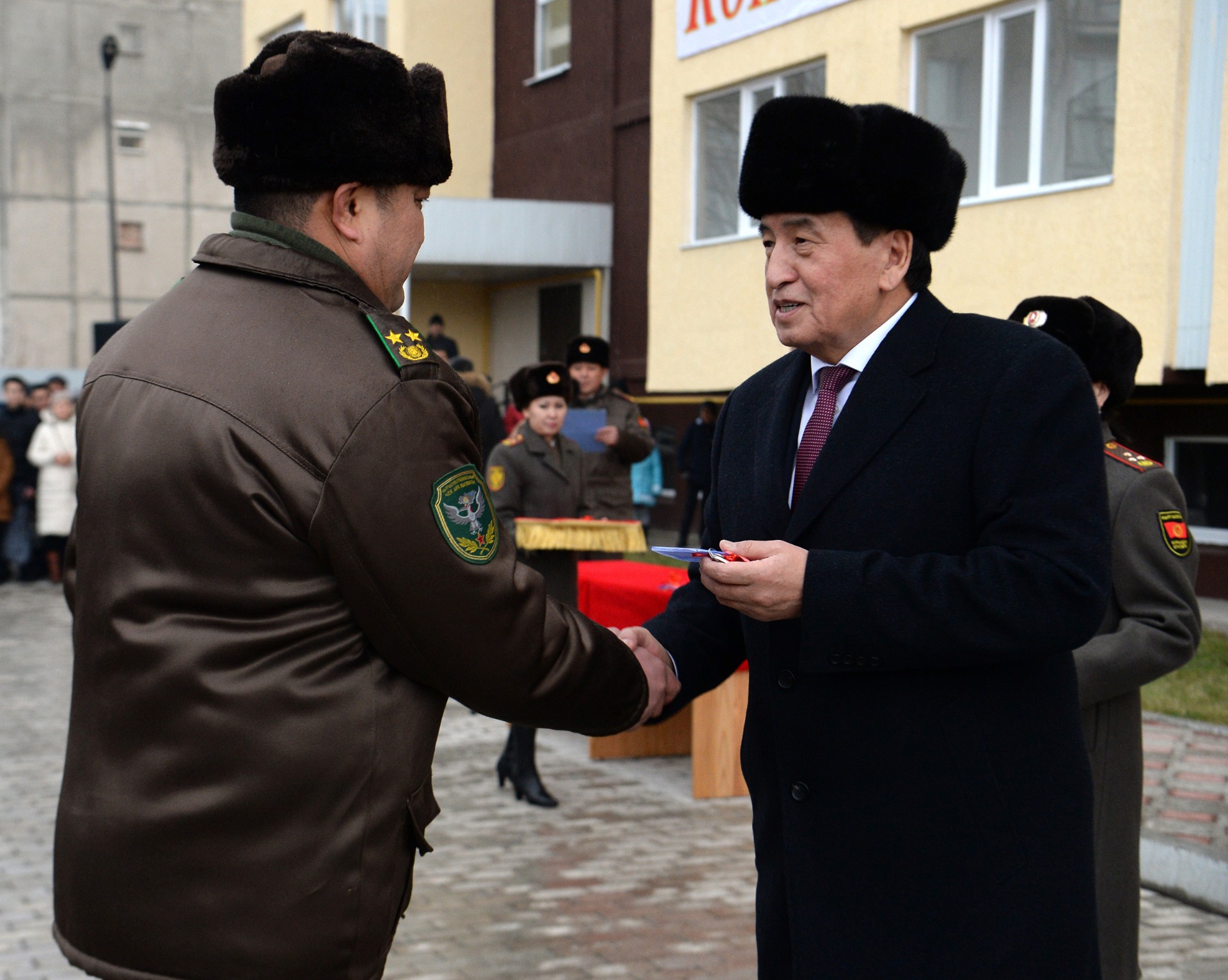 «Президент поздравил военнослужащих с радостным событием, отметив символичность того, что это происходит в канун Нового года. Сооронбай Жээнбеков подчеркнул, что улучшению социального положения военных и впредь будет уделено особое внимание», — говорится в сообщении пресс-службы.