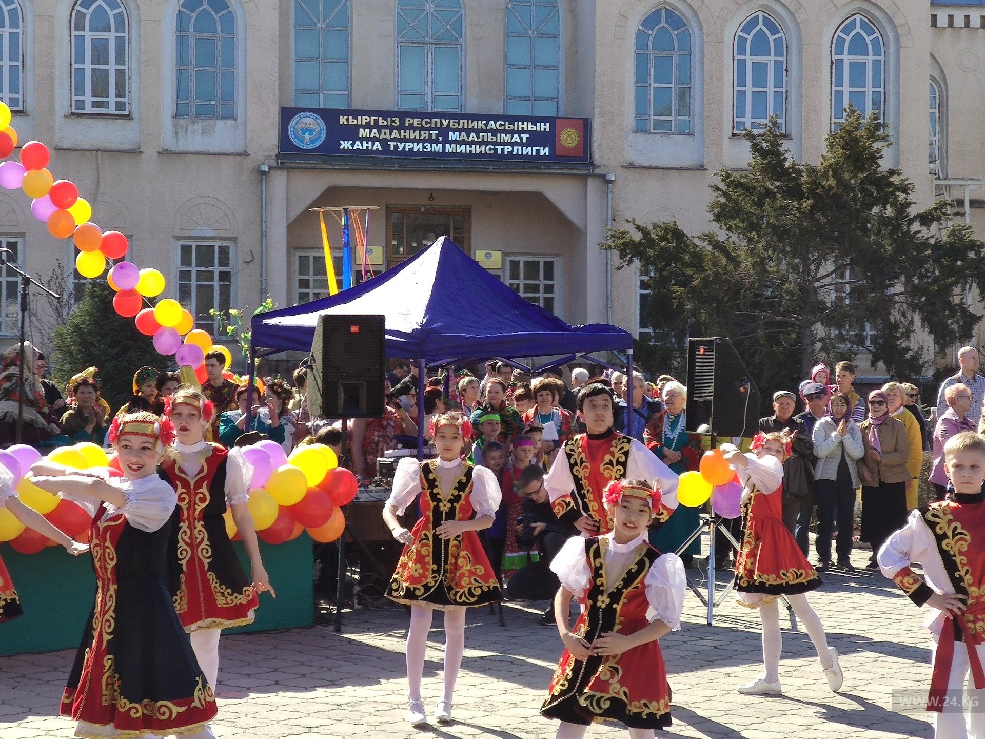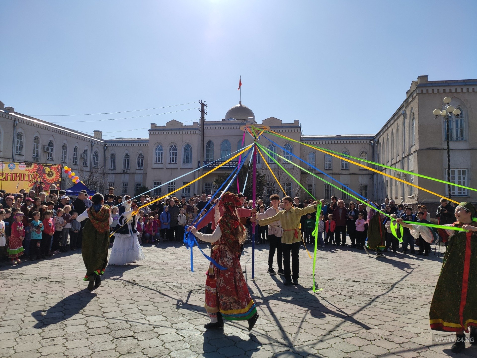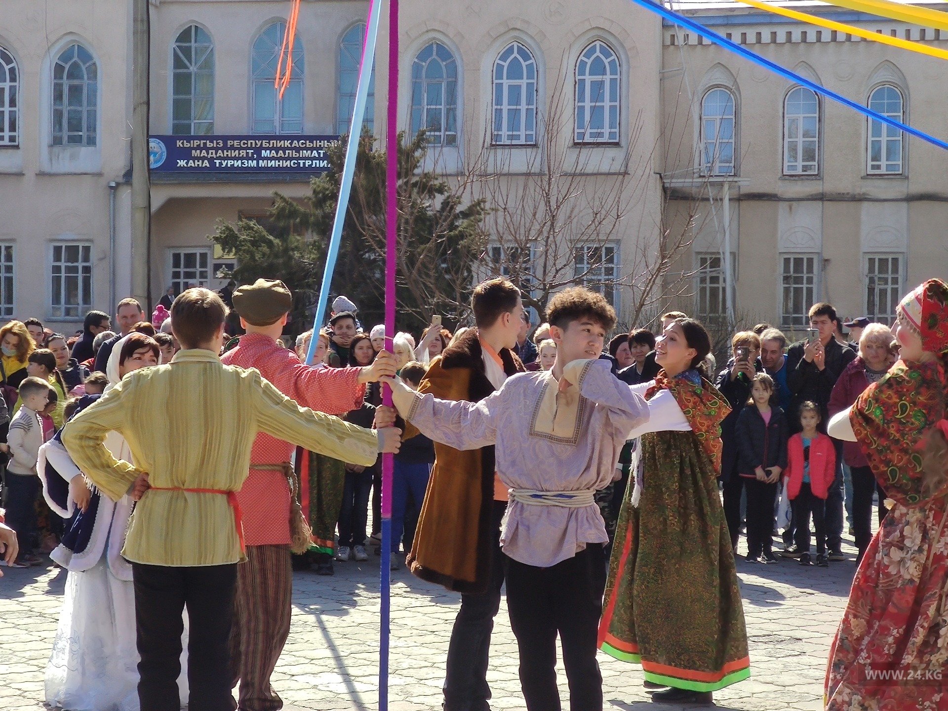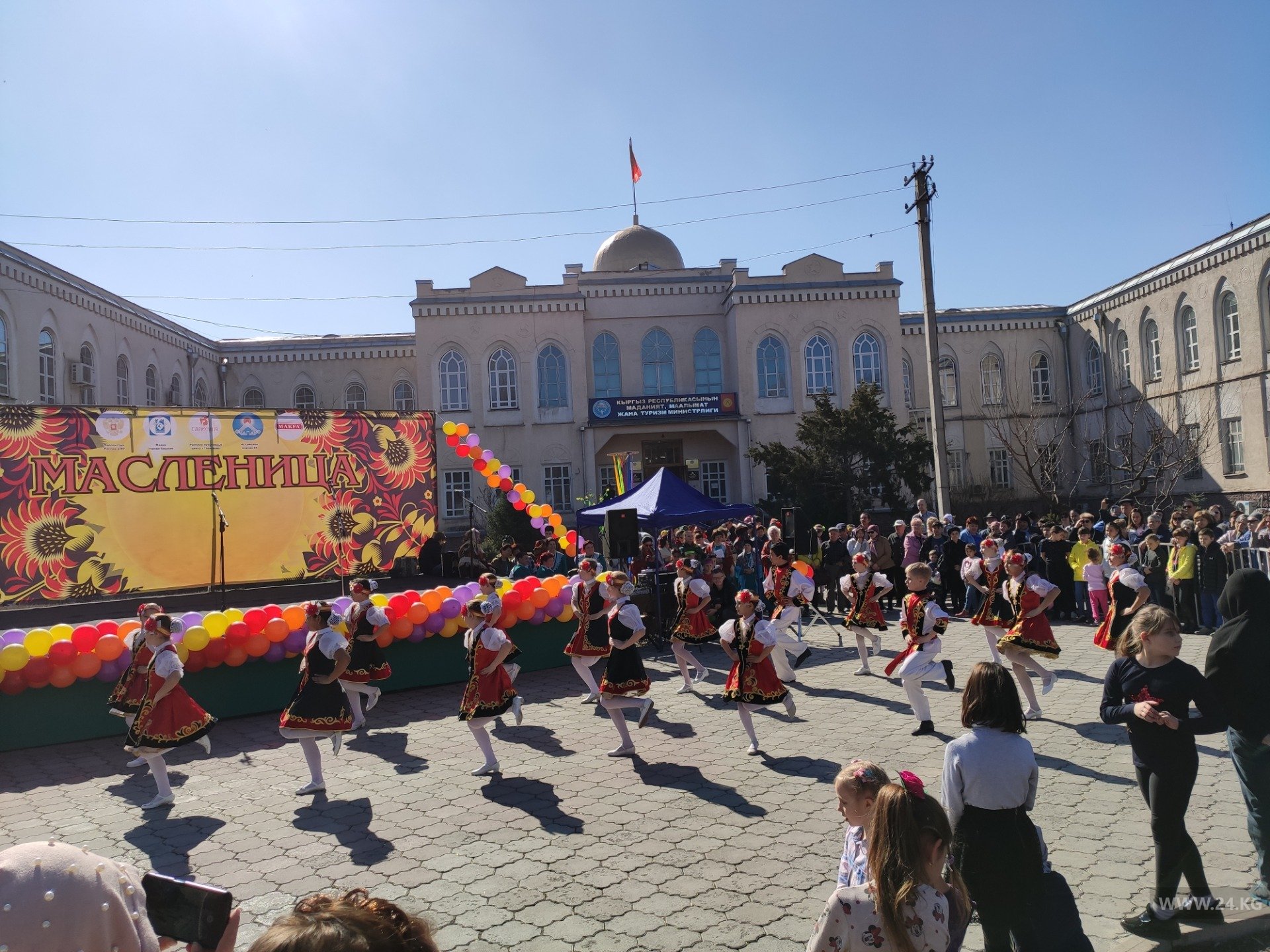 На площадке возле Министерства культуры, информации и туризма прошли праздничные гулянья. Бишкекчане и гости столицы отмечали Масленицу.