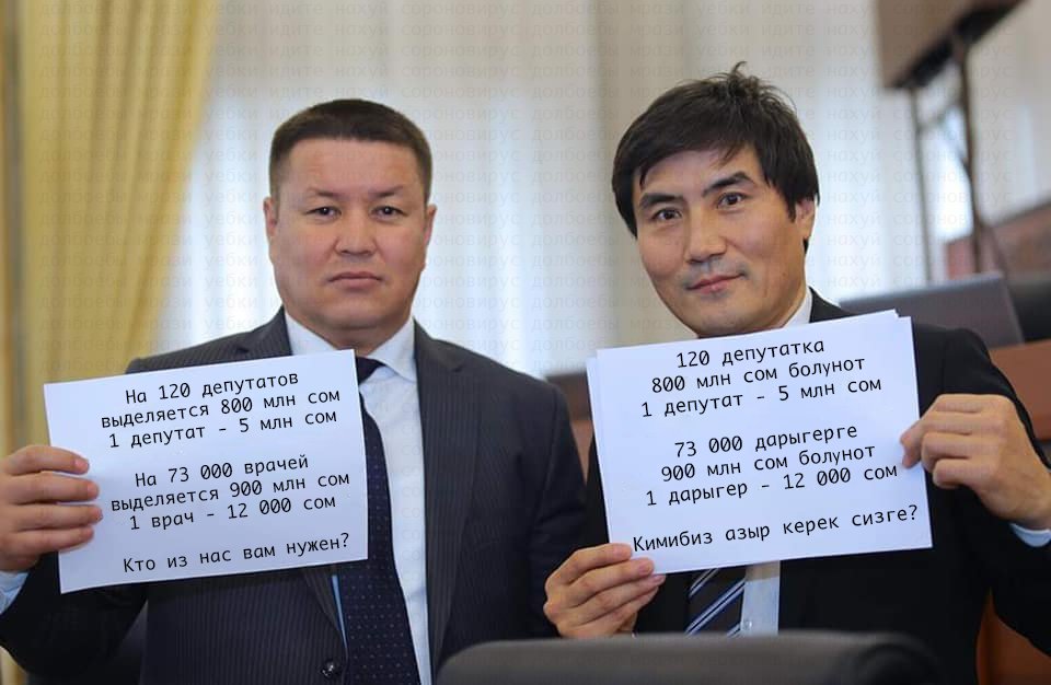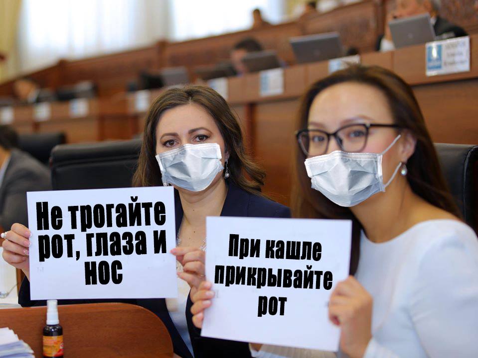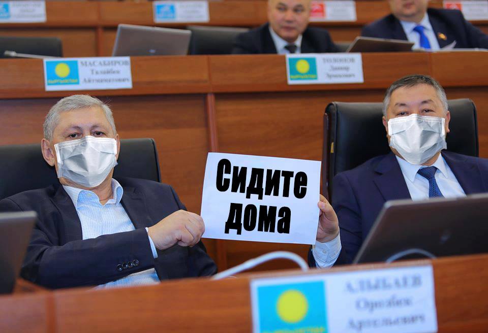Однако больше всего досталось депутатам, которые сегодня в стенах Жогорку Кенеша провели флешмоб с хештегом #Ынтымак. Они сфотографировались, держа лист бумаги в руках с надписью «Объединим усилия и победим заболевание COVID-19 вместе!»