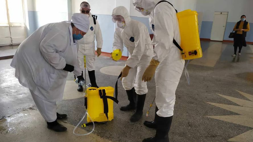 В Джалал-Абаде волонтеры Красного Полумесяца совместно с МЧС дезинфицируют автовокзалы, рынки, улицы и дома.