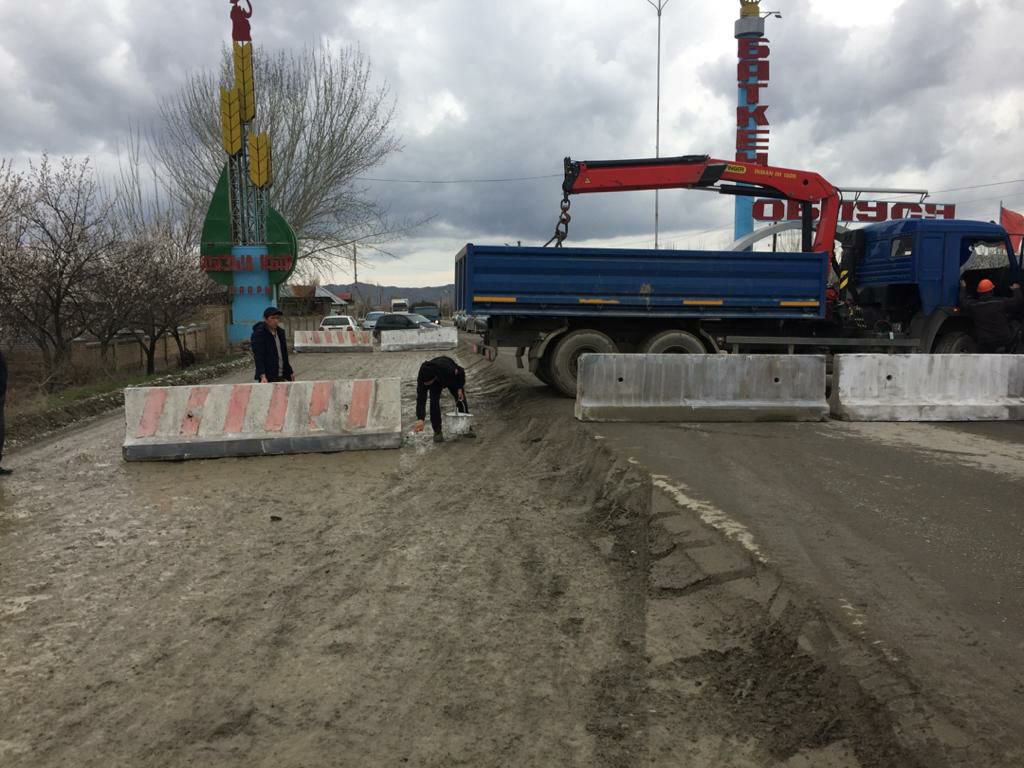 При въезде в Баткенскую область установили блокпосты. Фотографии опубликовали в интернете.